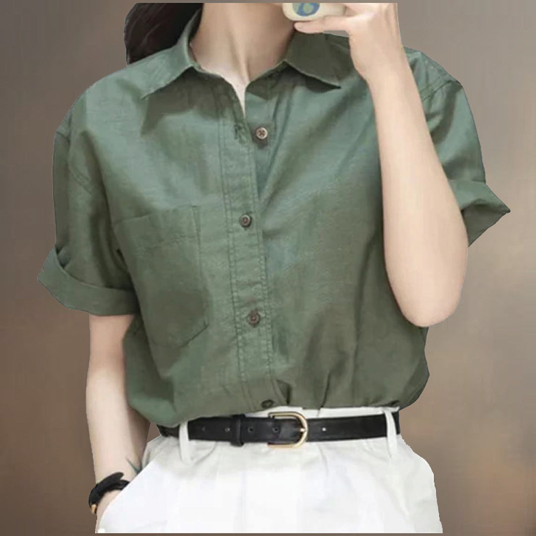 Cotton Linen Polo Shirt for Women – Breathable Short Sleeve Button-Down Top in Solid GreenRegular price RM86.00 MYRRegular priceUnit price / perRM138.00 MYRSale price RM86.00 MYRSale