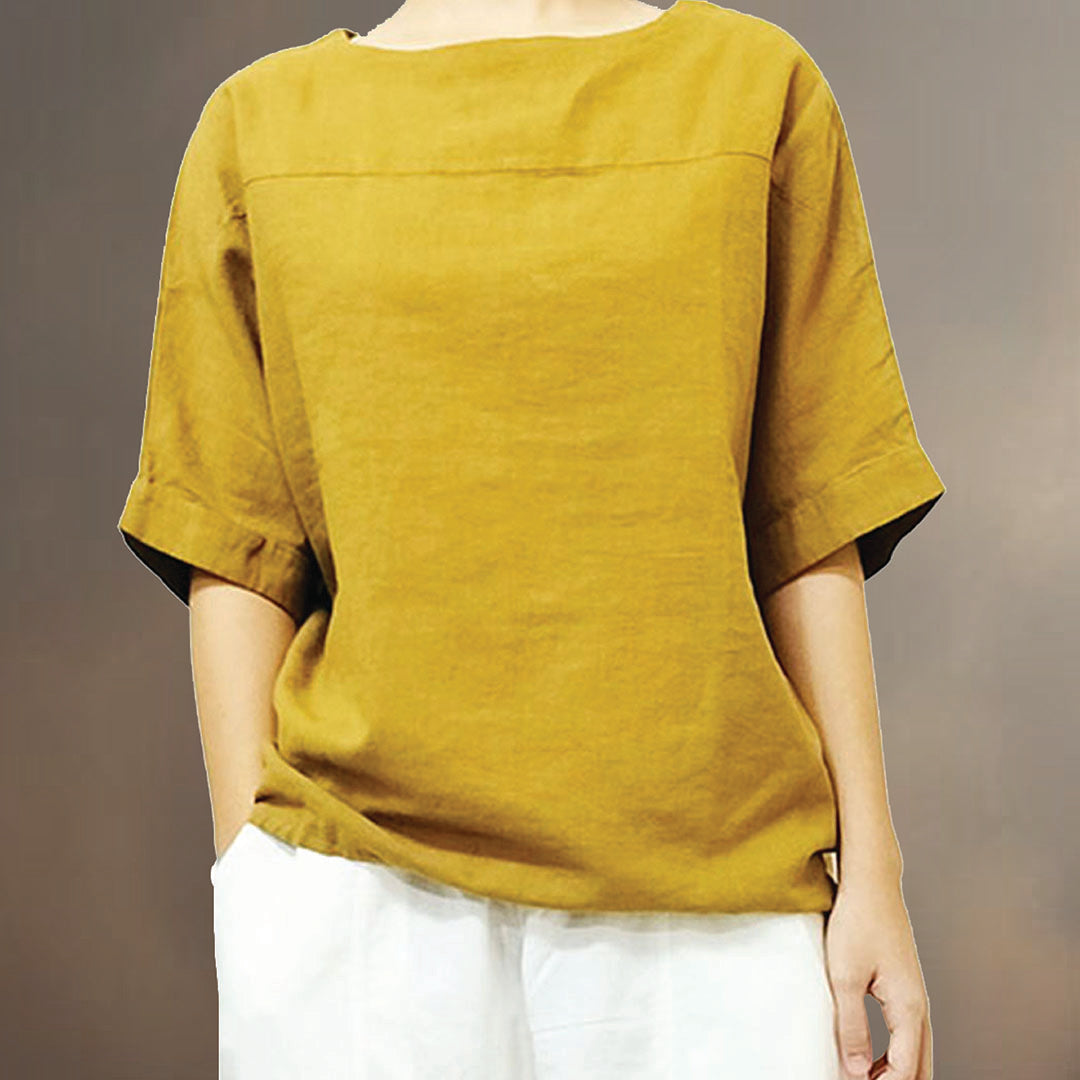 New Women's Cotton Linen Clothing: Vintage Loose-Fit Lightweight Sand-Washed Round Neck Patchwork Short-Sleeve Top in Cotton Linen.Regular price RM125.00 MYRRegular priceUnit price / perRM158.00 MYRSale price RM125.00 MYRSale