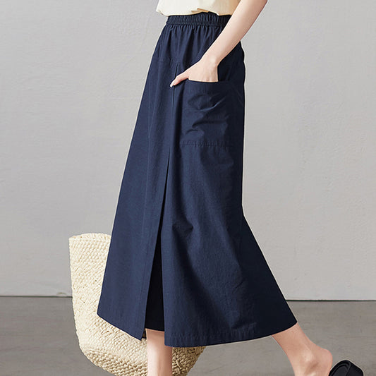 A summer loose-fit, slimming long skirt with a sophisticated, stylish, and elegant vibe, perfect for casual wear, featuring a side slit.