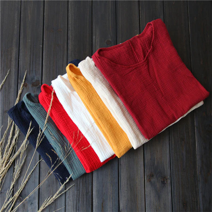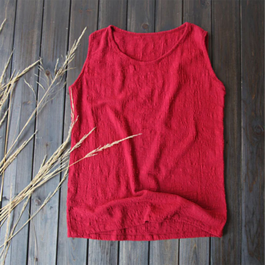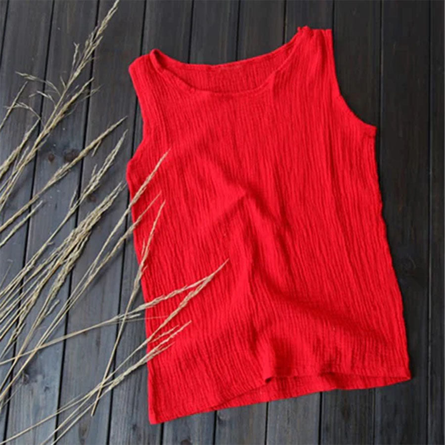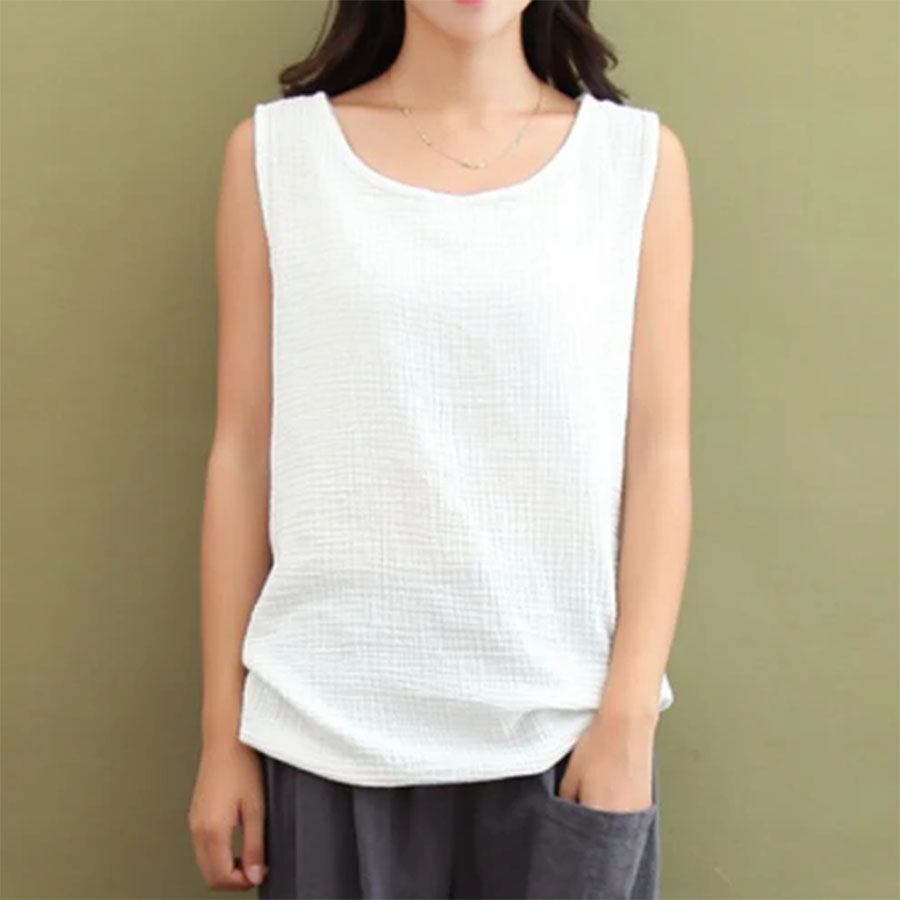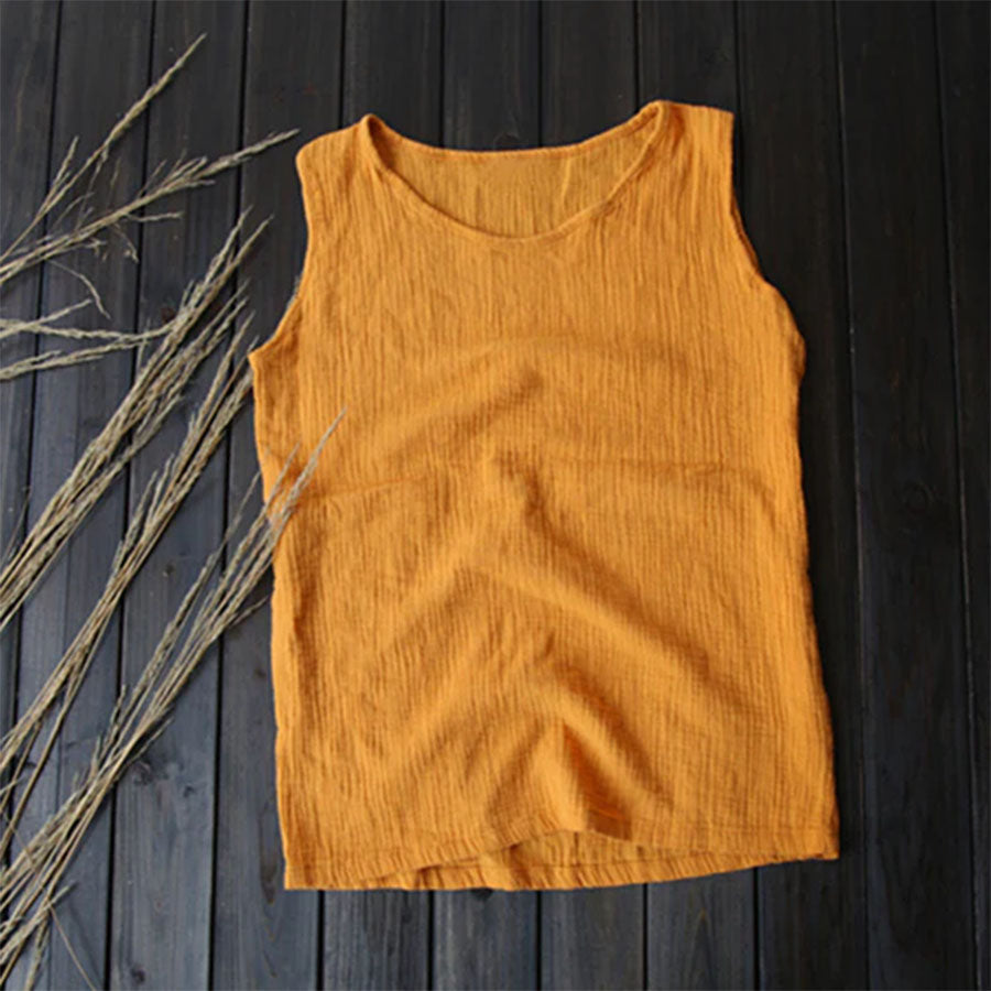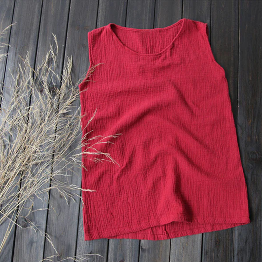 This cotton-linen tank top features a breathable double-layer gauze design that feels soft and light on the skin. The loose fit flatters all shapes and can be worn alone or layered—perfect for laid-back summer days or effortless layering.