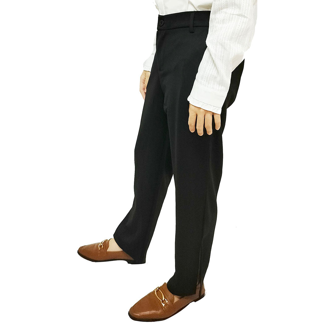 Elegant Women’s Black Suit Trousers: Ice Silk, Side-Slit, Nine-Point