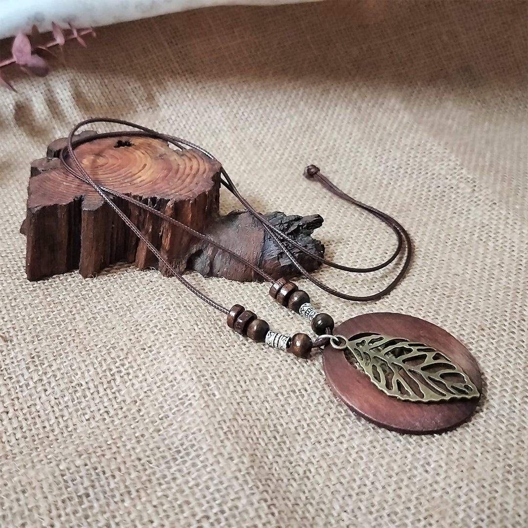 The leaves pendant symbolizes vitality and growth, giving the wearer a sense of closeness to nature and spiritual strength. Whether for daily wear or special occasions, this necklace adds a touch of natural and rustic charm to your outfit.
